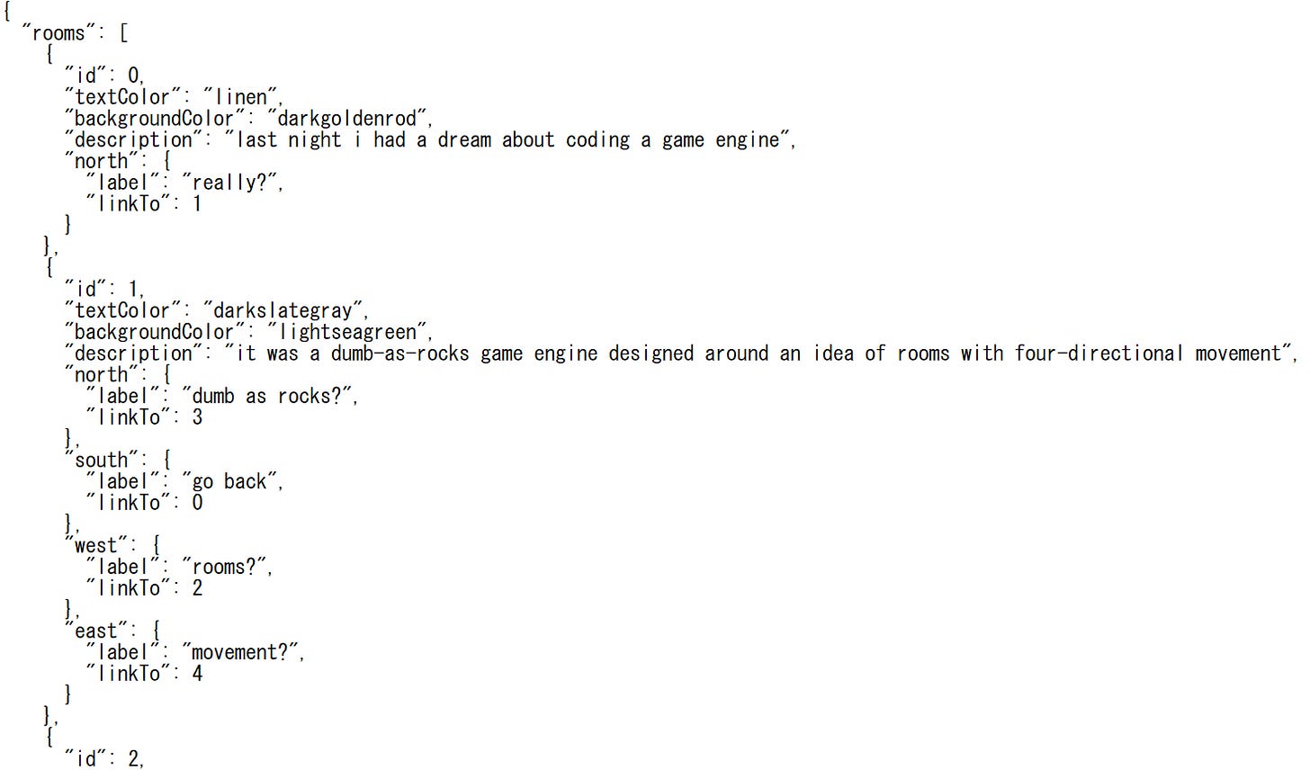 なお「nswengine」は公開後にアップデートが重ねられており、執筆時点ではアスキーアートにも対応しているとのこと。機能的にはミニマルなものの、部屋を増やせば壮大なスケールでの展開もできるかもしれません。