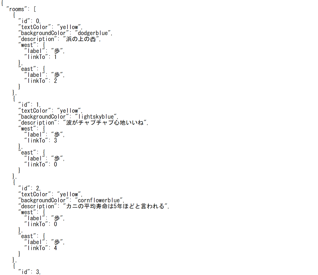 どんなツールかというと、部屋に見立てたテキストおよび背景のユニットの上下左右に小さなテキストリンクを貼り、各部屋の間を遷移できる仕組み。テキストと背景の色も任意で変更可能です。